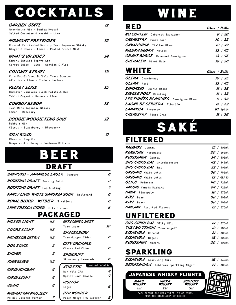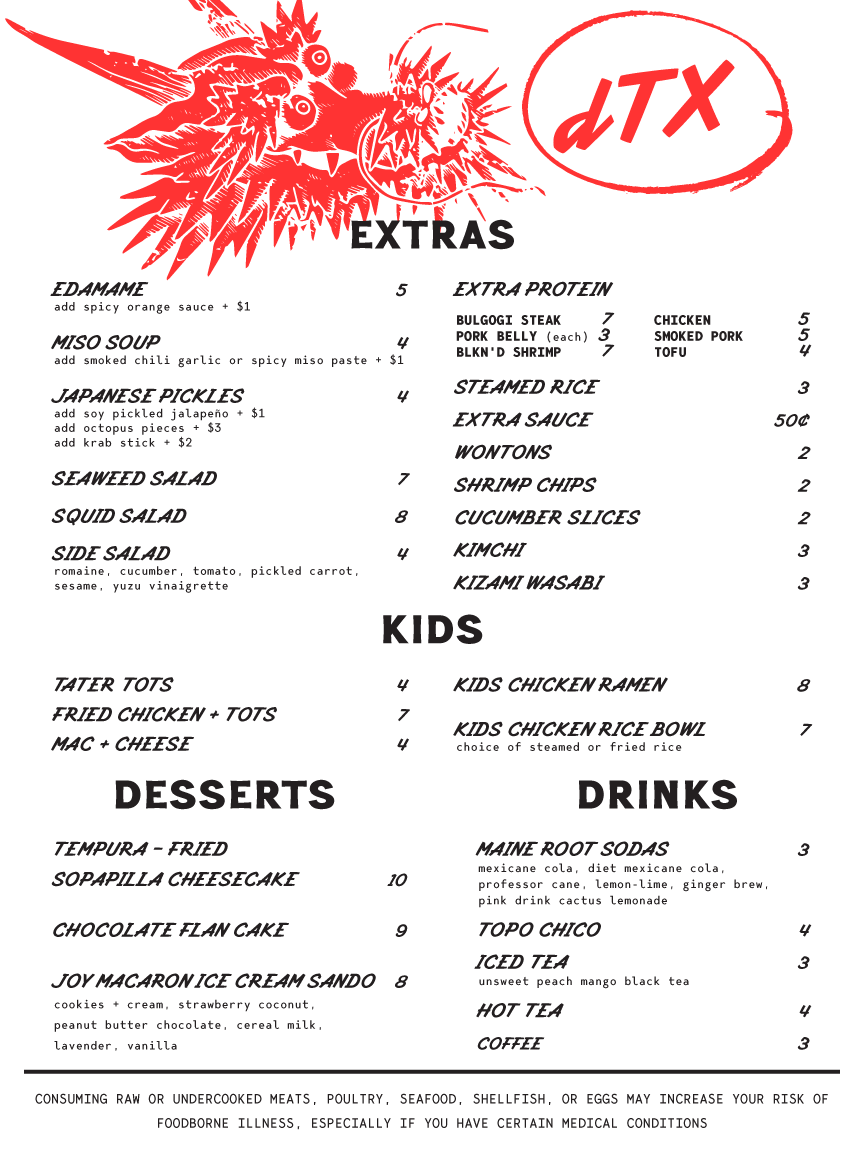 2 for $12, 3 for $16, spicy orange, yuzu slaw, cilantro, pickled radish